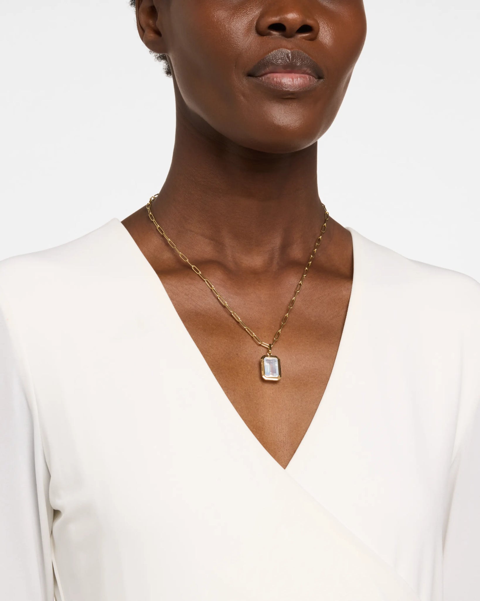 法國品牌經典水晶-透白-方糖18K金色項鍊